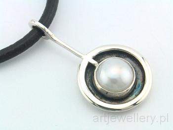 9043 Wisior: perła, srebro, wys. 3,7cm, szer. 2cm. Pendant: pearl, silver, height 3,7cm, width 2cm.