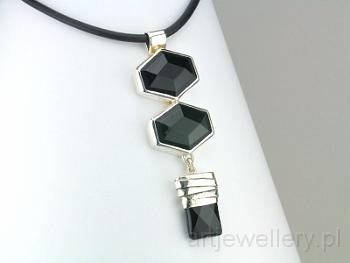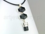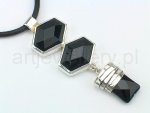 9098 Wisior: szkło weneckie, onyks, srebro, wys. 7,8cm, szer. 2,5cm. Pendant: Venetian glass, onyx, silver, height 7,8cm, width 2,5cm.
