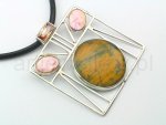 9101 Wisior: cyrkonia, perły, kwarc tygrysie oko, srebro, wys. 5,7cm, szer. 5cm. Pendant: cubic zirconium, pearls, quartz tiger’s-eye, silver, height 5,7cm, width 5cm.