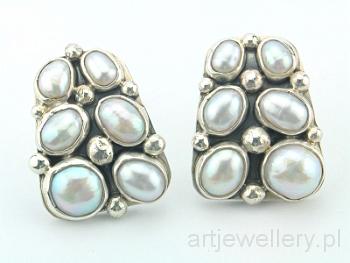 9105 Kolczyki: perły, srebro, wys. 2,5cm, szer. 2cm. Earrings: pearls, silver, height 2,5cm, width 2cm.