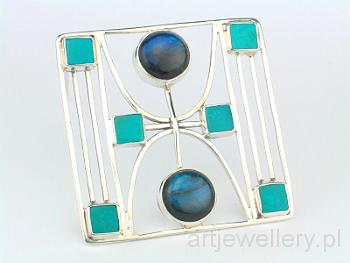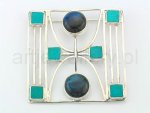 9123 Broszka: howlity, labradoryty, srebro, wys. 5cm, szer. 5cm. Brooch: howlites, labradorites, silver, height 5cm, width 5cm.