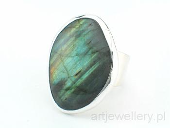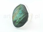 9156 Pierścionek: labradoryt, srebro, wys. 3,5cm, szer. 2,5cm. Ring: labradorite, silver, height 3,5cm, width 2,5cm.