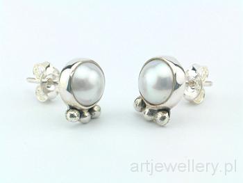 9213 Kolczyki: perły, srebro, wys. 1,1cm, szer. 0,9cm. Earrings: pearls, silver, height 1,1cm, width 0,9cm.