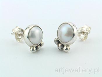 9219 Kolczyki: perły, srebro, wys. 1,1cm, szer. 0,8cm. Earrings: pearls, silver, height 1,1cm, width 0,8cm.